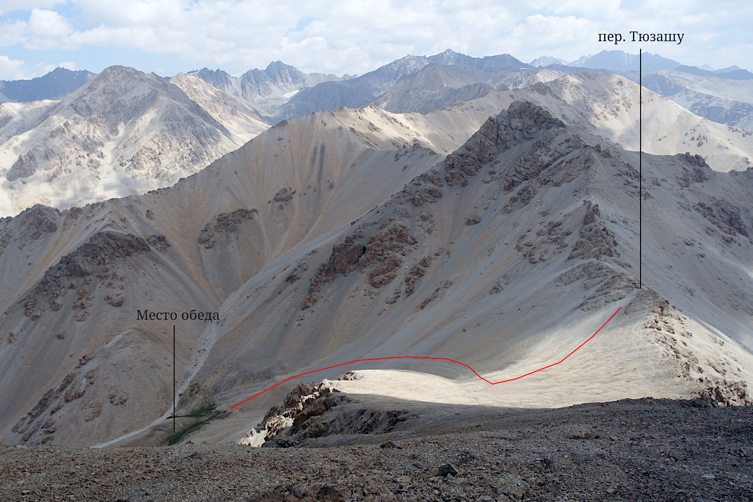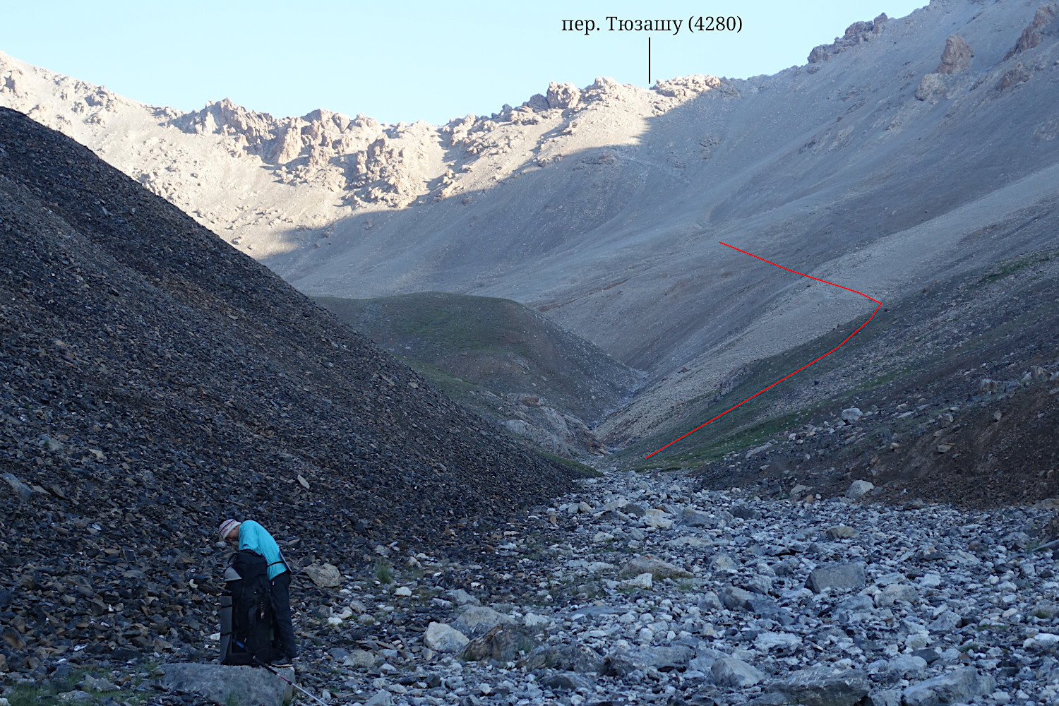 на северный склон пер. Тюзашу (4280, 1А).