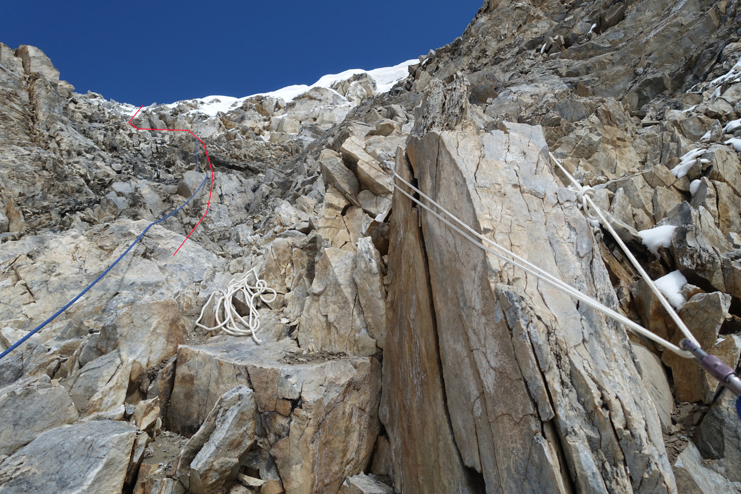 Ф.46. Скальный выступ, за который закрепляется нижняя веревка. |