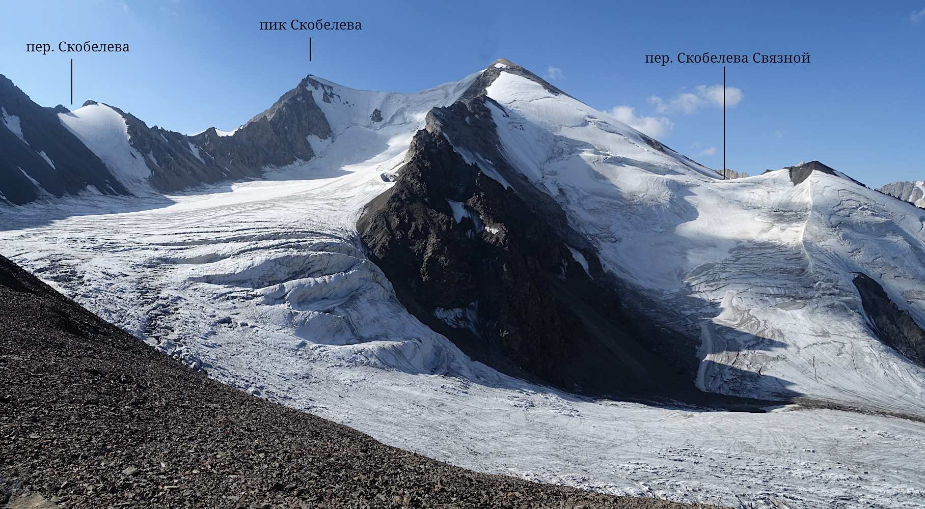 Ф.63. С перевала Дмитрия Собянина открывается прекрасный вид на пик Скобелева (5051). |