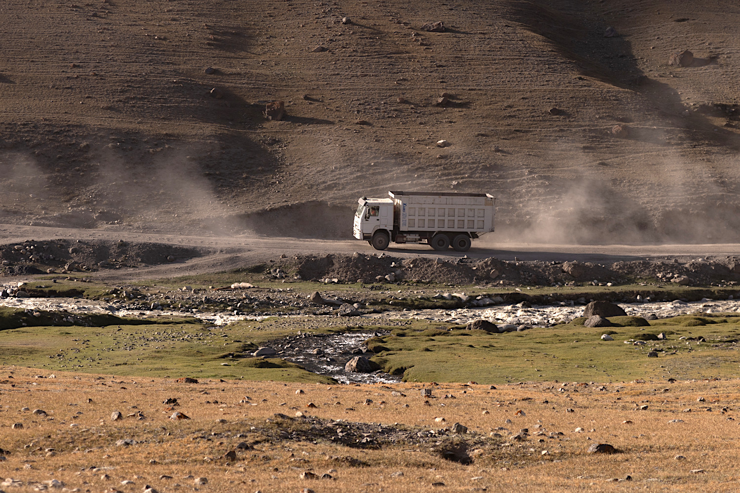 Спустившись на ледник, мы прошли по нему около 750 метров и вошли в карман между ледником и левой береговой мореной. Через 200 метров карман из-за каменных завалов стал труднопроходимым, поэтому мы свернули направо, взобрались на зачехленный ледник и пересекли его к центру. Еще через 300 метров ледник закончился. Здесь мы повернули налево и спустились в карман между основной мореной и склоном левого борта. По этому карману мы вышли в пойму реки, некоторое время спускались вдоль воды, пока вода не ушла под землю. Наконец, перебродили вновь появившуюся реку на левый берег и по террасам левого берега спустились к углевозной дороге в долине реки Восточный Кичик-Алай, см. фото 70. К дороге через Кичик-Алай был переброшен скотогонный мост, рядом с ним машинный брод. Не доходя до моста 200 м мы встали лагерем на ночлег на симпатичной полянке рядом с ручьём. Координаты лагеря: 39° 51.779'N 72° 36.127'E 3365 H. |