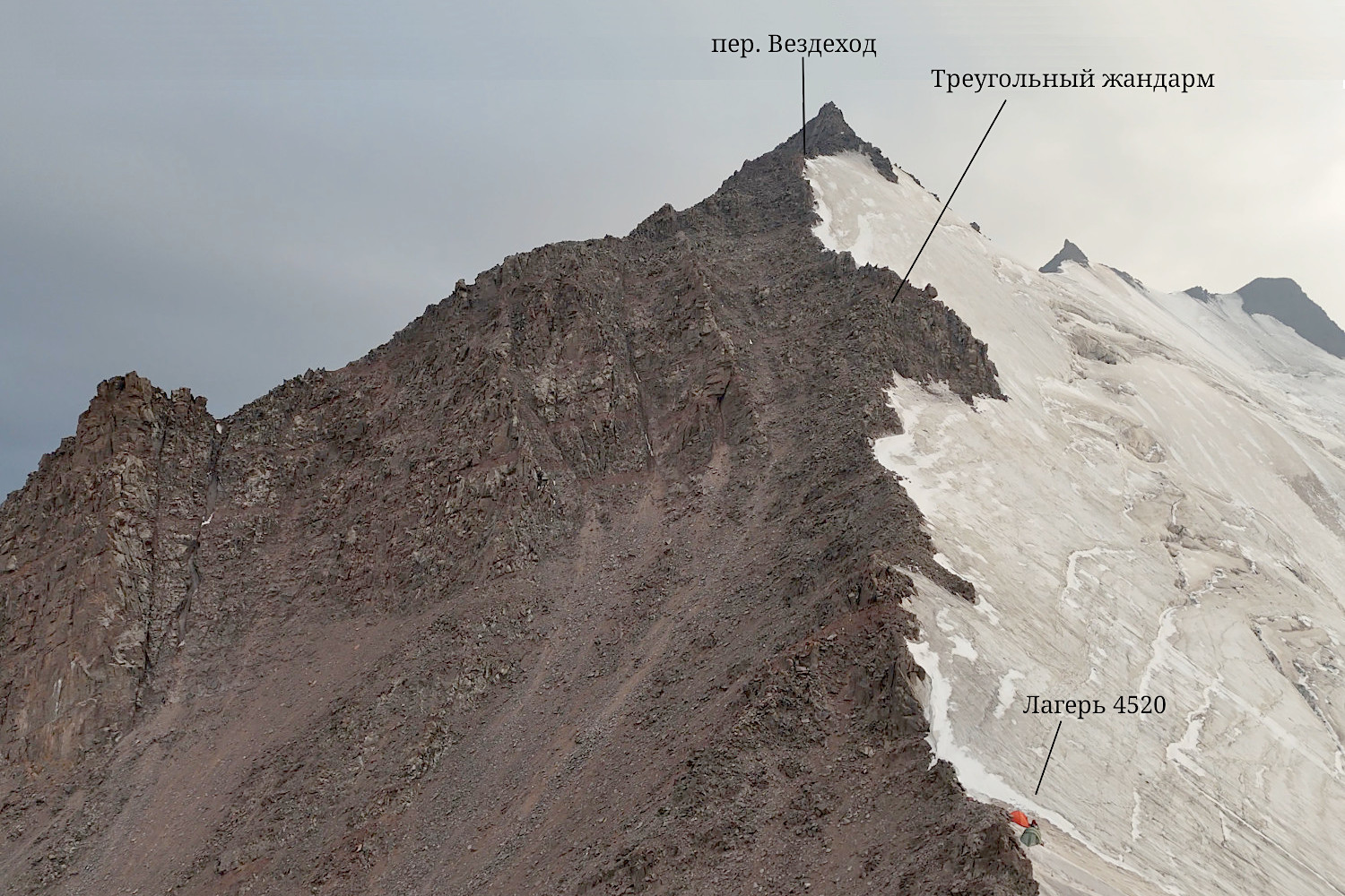 Ф.27. Участок северо-восточного гребеня вершины 4811 от лагеря 4520 до перевала Вездеход. |